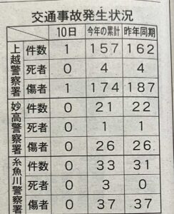 上越市の交通事故発生状況11/10現在 | 上越市 なごみ接骨院