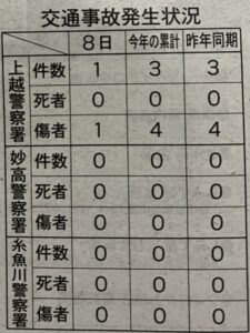 上越市の交通事故発生状況1/8現在