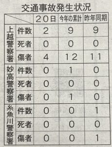 上越市の交通事故発生状況1/20現在