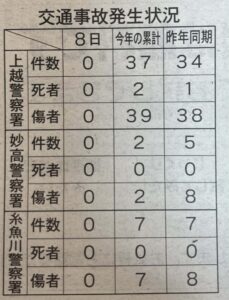 上越市の交通事故発生状況3/8現在