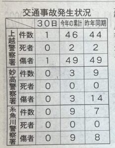 上越市の交通事故発生状況3/30現在 | 上越市 なごみ接骨院
