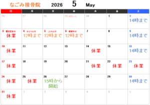 その他臨時休診や受付時間の変更は随時更新いたします。